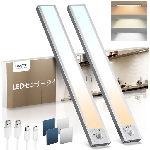 ■LROLTEF キッチンライト LEDセンサーライト 人感 室内 TYPE-C充電式 3色調整可能 無段階調光 30CM 2200MAH 大容量 LED バーライト 昼光色