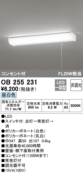 ■オーデリック OB255231 キッチンライト LED一体型 昼白色 ODELIC