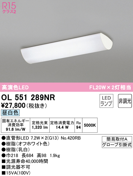 ■(送料無料) オーデリック OL551289NR キッチンライト LEDランプ 昼白色 非調光 ODELIC