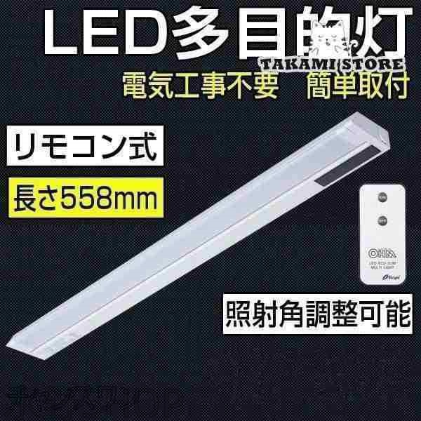 ■LED多目的灯 流し元灯 LEDライト LEDバーライト おしゃれ 連結用 長さ558mm 昼光色 リモコン付き キッチンライト エコスリム リモコン式
