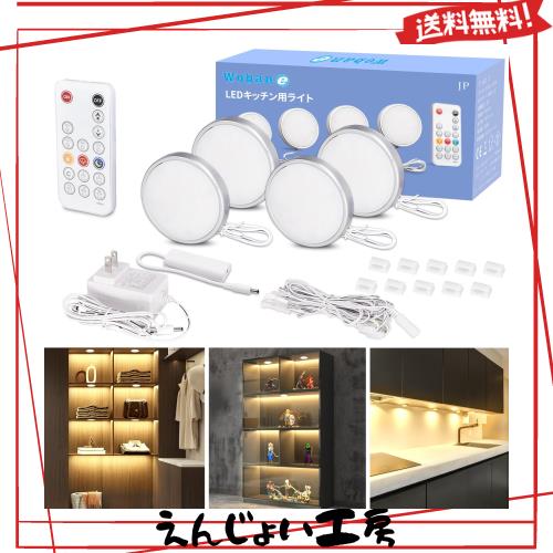 ■Wobane キッチンライト 間接照明 電球色 ショーケース照明 ライトリモコン付き 調光可能 時間設定 工事不要 貼り付け式 LEDキャビネット
