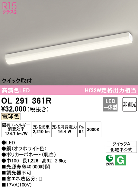 ■(送料無料) オーデリック OL291361R キッチンライト LED一体型 電球色 非調光 ODELIC