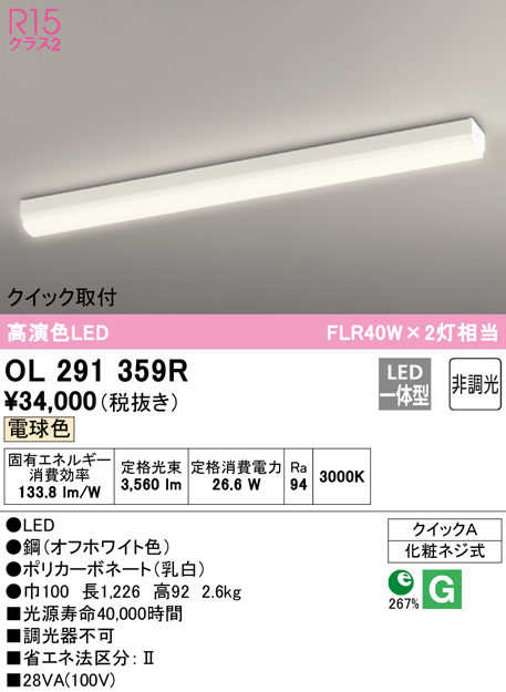 ■(送料無料) オーデリック OL291359R キッチンライト LED一体型 電球色 非調光 ODELIC