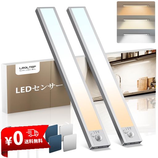 ■LROLTEF キッチンライト LEDセンサーライト 人感 室内 TYPE-C充電式 3色調整可能 無段階調光 21CM 1500MAH 大容量 LED バーライト 昼光色