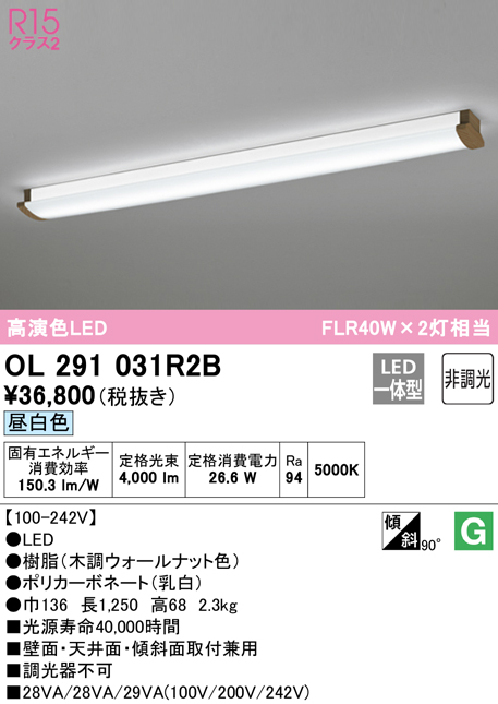 ◆メーカー:オーデリック ◆品名:キッチンライト LED一体型 昼白色 非調光 ◆品番:OL291031R2B ◆器具光束(lm):3000〜4000 ・商品スペックについては商品画像をご参照くださいませ。 ◆沖縄県は配送不可となります。ご了承下さい。 ※「発送先が北海道・沖縄・離島地域」に該当するお客様は別途送料がかかる場合がございます。 システムの都合上、ご注文時には送料が加算されておりませんが、 ご注文完了後に当店よりメールにて追加送料の承諾が取れてから手配を進めさせていただきます。 「発送先が北海道・沖縄・離島地域」に該当するお客様で ご注文前に送料を知りたい方はお問い合わせいただけましたらご案内いたしますので、 お気軽にお申し付けください。