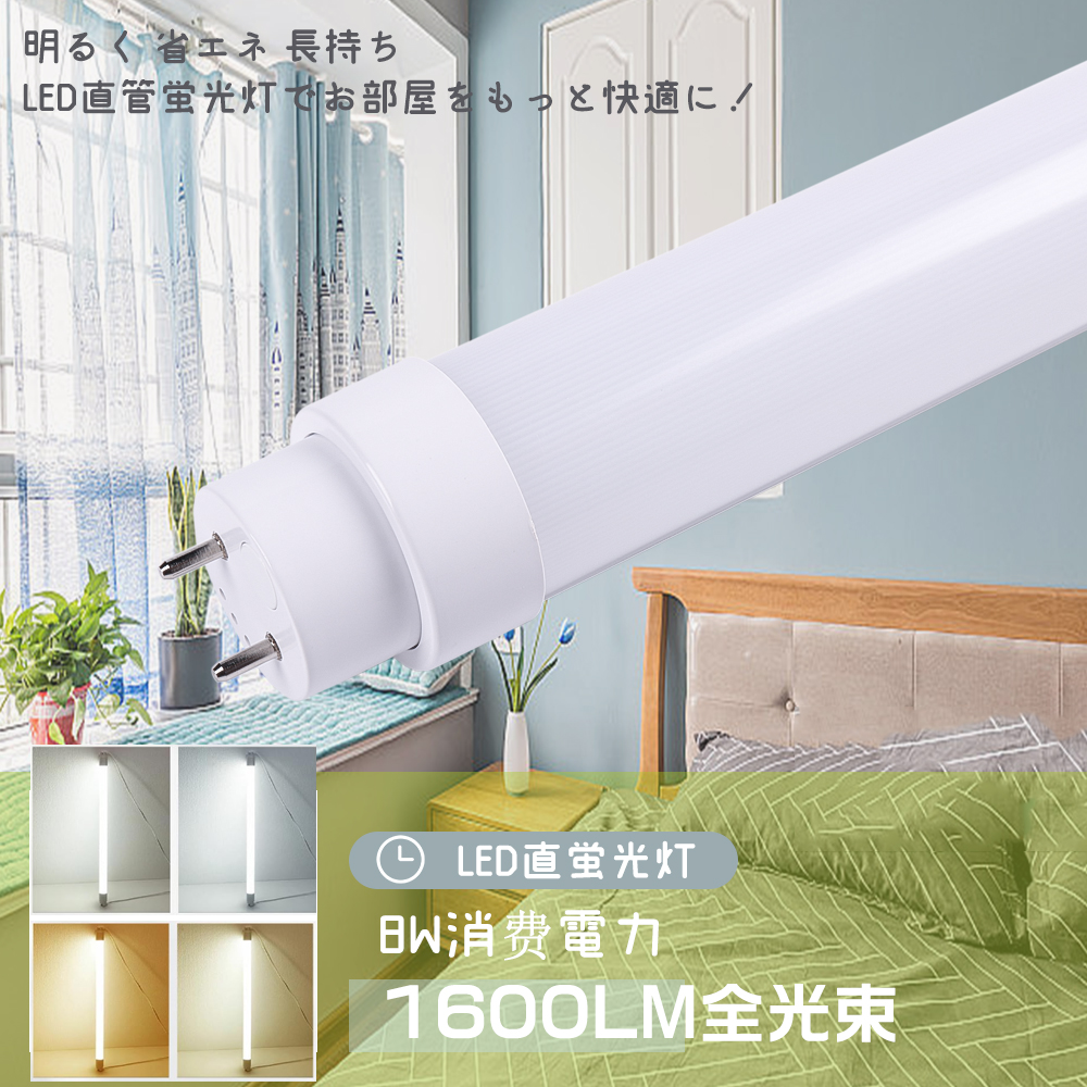 ★★乳白色カバータイプで自然な雰囲気。高透明性!光源が部屋全体に均等に配光されるため、快適な照明が得られます!★★ 仕様 商品名:LED蛍光灯 15W形(工事不要タイプ) 消費電力:8W 全光束:1600LM 200LM/W 口金:G13(180度回転式) 入力電圧:AC85V〜265V 50/60HZ 配光角度:180° 発光色:電球色3000K/白色4000K/昼白色5000K/昼光色6000K 演色指数(CRI):≧Ra85 設計寿命:50000H 材質:アルミニウム+PCカバー 給電方式:両側給電(片側給電の場合に、工事必要) サイズ:φ30×L436mm (T10) 重量:約0.14kg 保証期間:2年保証 調光器:非対応