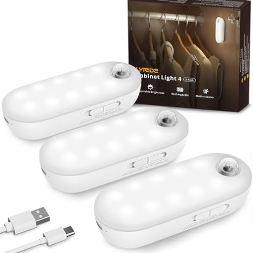■LYRIDZ センサーライト 室内 USB充電式 キッチンライト 無段階調光 足元灯 キャビネットホール/階段/クローゼット/キッチン用 昼光色 【3