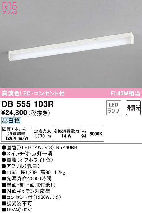 ■(送料無料) オーデリック OB555103R キッチンライト LEDランプ 昼白色 ODELIC