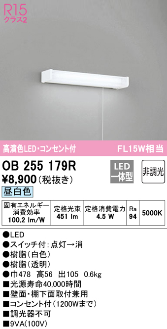 ■オーデリック OB255179R キッチンライト LED一体型 昼白色 ODELIC