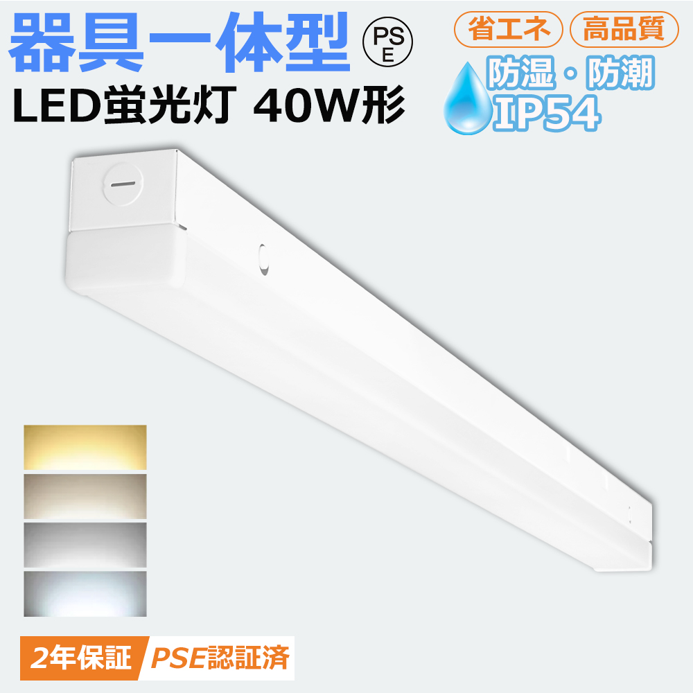 ■【白色4000K】LED蛍光灯 40W形 器具一体型 トラフ型 LEDベースライト 40W形 2灯相当 逆富士 一体型 防湿 防塵 IP54 トラフ LED蛍光灯器具