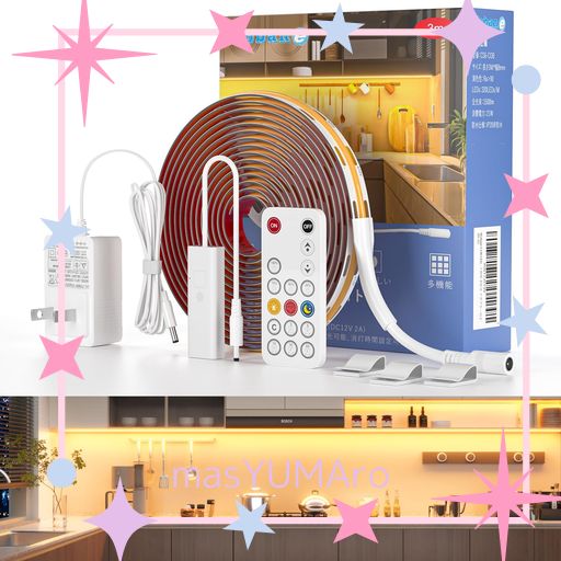 ■WOBANE COB LED テープライト 3M 電球色 1500LM 高輝度 間接照明 リモコン付 無段階調光 5段階消灯タイマー メモリ機能 工事不要 貼付け