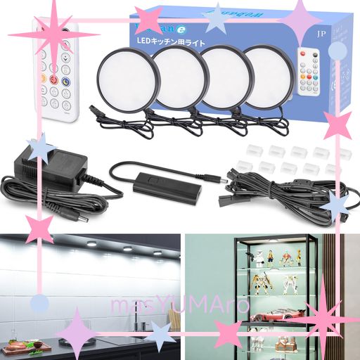 ■WOBANE キャビネットライト 4個 棚 LED リモコン「調光・タイマー・メモリー機能」700LM 高輝度 高演色性 間接照明 キッチン/本棚/ショー
