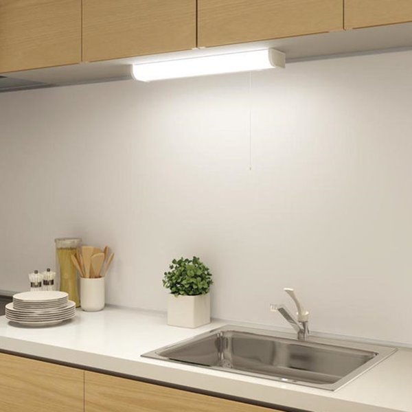 ■キッチンライト LED流し元灯 台所用 天井照明器具 幅54.7cm 常夜灯 コンセント付き 蛍光灯20W相当