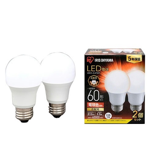 ■アイリスオーヤマ LED電球 E26 広配光2P 電球色 60形 810lm LDA7L-G-6T62P(2個入)[蛍光灯・電球]