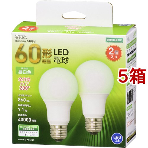 ■LED電球 E26 60形相当 昼白色 全方向 LDA7N-G AG52 2P(2個入*5箱セット)[蛍光灯・電球]