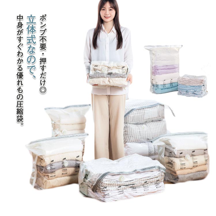 ■送料無料 立体圧縮袋 衣類 圧縮袋 2枚入り 衣類 旅行 掃除機不要 立体タイプ 押すだけ 真空圧縮袋 圧縮ボックス 洋服 布団 衣替え 子供服