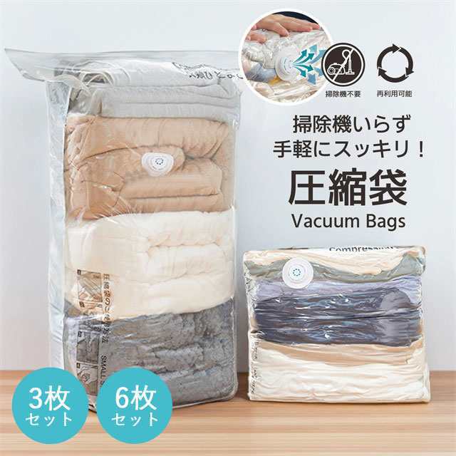 ■圧縮袋 立体 3枚 6枚入り 掃除機不要 衣類服 収納 布団 冬服 セーター 旅行 押すだけ カビ対策 防虫 防塵 防カビ 衣類収納 クローゼット