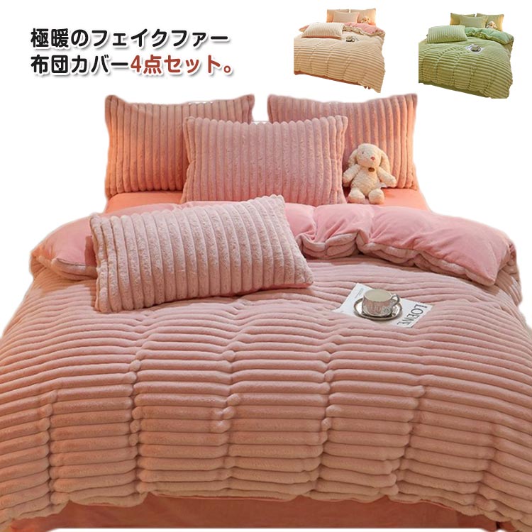 ■静電気防止ラビットファー 布団カバーセット もこもこ シングル ダブル 4点セット フェイクファー 冬用 あったか 寝具カバー セット 布団
