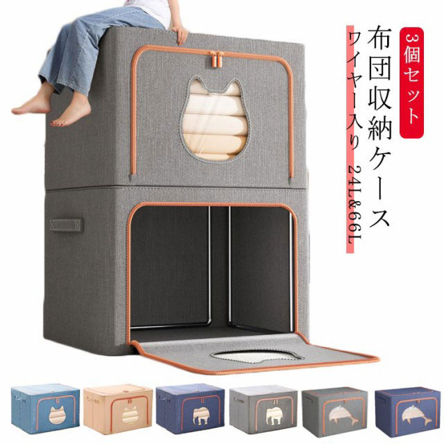 ■ぬいぐるみ 布団 折りたたみ 布団収納 3個セット 布団 布団ケース ワイヤー入り 持ち手付き 衣類 収納ケース 収納袋 66L 収納ケース 透明
