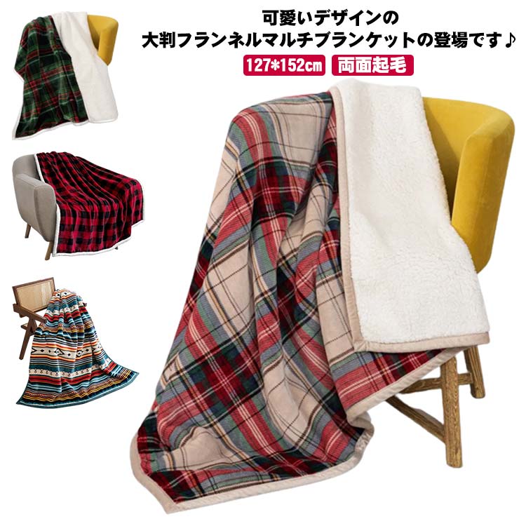 ■ブランケット 127*152cm 大判 裏ボア 両面起毛 毛布 寝具 布団 暖かい ボリューム感 お花見 アウトドア 防寒 寒さ対策 おしゃれ 在宅 テ