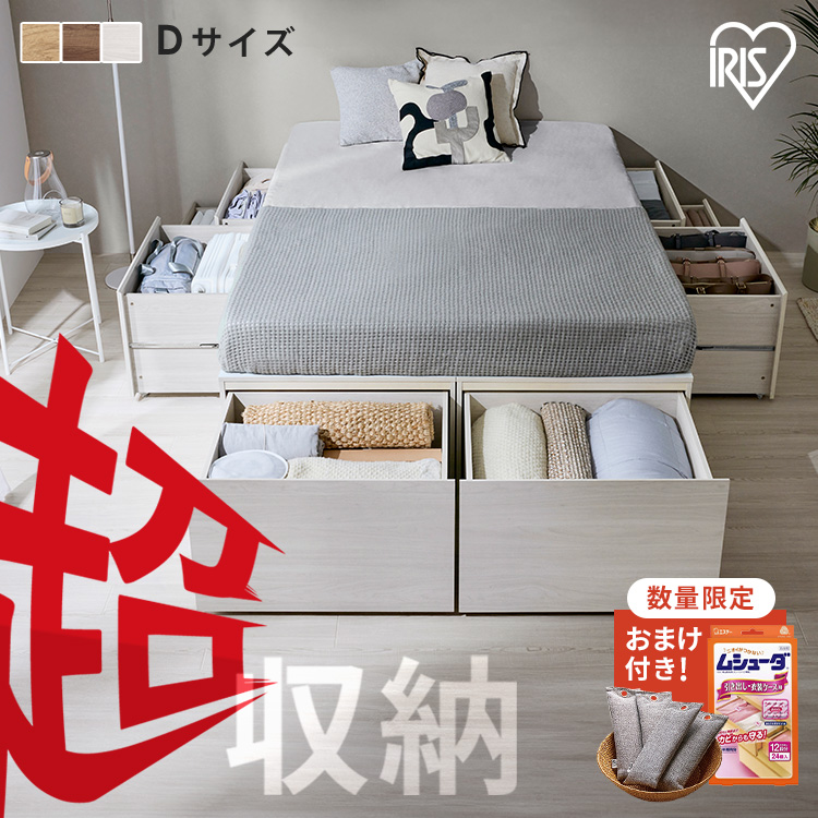 ■ベッド ダブル 収納 大容量 超収納 引出し 8個 滑り止め付 布団 洋服 家電 小物収納 ベッドフレーム ヘッドレス ヘッドボードなし ハイタ