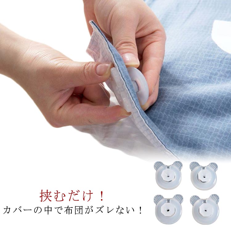 ■布団クリップ 4個セット 布団 ずれ防止 シーツクリップ 布団固定 ズレ防止クリップ 挟むだけ 軽量 プラスチック素材 クリアカラー オール