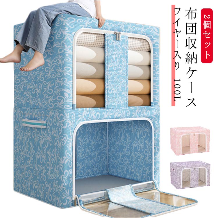 ■衣類収納 布団 布団 ワイヤー入り 収納袋 丈夫 100L 衣類 持ち手付き 布団ケース 収納ケース 収納ケース 2個セット 大容量 布団収納 収納