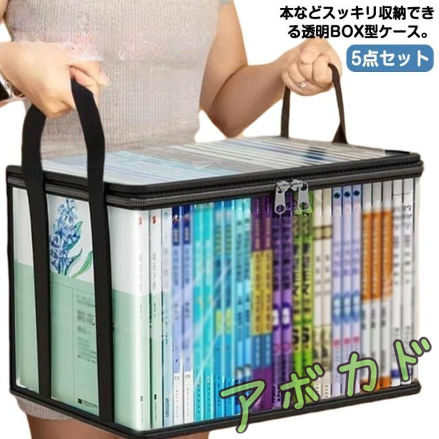 ■書籍 折りたたみ 持ち手付き ケース 5点セット 布団 防水 雑誌 収納ボックス 収納 クリア コミック ぬいぐるみ 収納袋 透明 大容量 中身