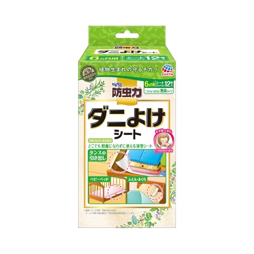 防虫力 ダニよけシート 無臭 12枚入 防ダニ 忌避 ダニシート 防カビ 消臭 引き出し 布団 ベッド タンス 防カビ 防虫 無香料