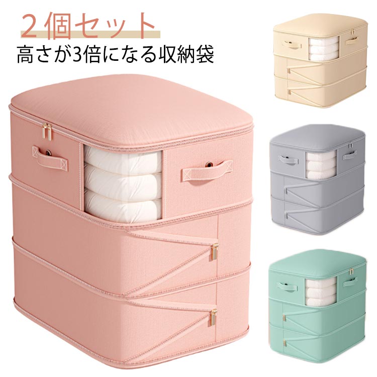 ■布団 収納ケース 3段 圧縮 ファスナー 中身が見える 2個セット 布団収納ボックス 防カビ 布団収納ケース 通気 羽毛布団 収納袋 布団収納