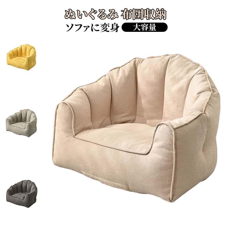 ■ぬいぐるみ 収納袋 ソファになる 布団 収納ケース クッション ふとん収納 ぬいぐるみ収納 収納できるカバー ビーズソファカバー ソファに