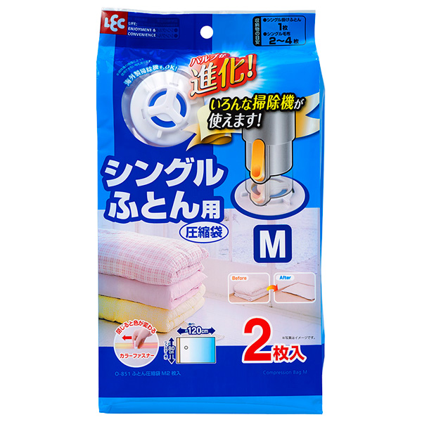 ■圧縮袋 バルブ付き ふとん圧縮袋 M 2枚入 O-851 | 収納袋 シングル コンパクト ロック式バルブ 掃除機対応 衣替え ふとん 布団 毛布
