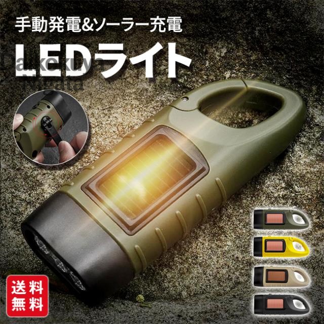 【クーポン配布中!】懐中電灯 LEDライト ソーラー式 ソーラー充電 緊急用 手動発電 充電式 手回し 停電 防災グッズ 電池不要 太陽光 小型 軽量 避難 携帯 コンパクト