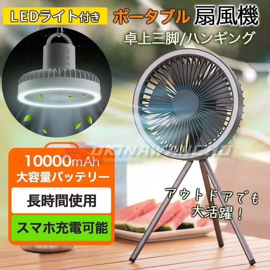 ■扇風機 アウトドア キャンプ 卓上 スタンド式 壁掛け 吊り下げ シーリングファン コンパクト 小型 軽量 静音 usb 充電 ledライト 卓上扇