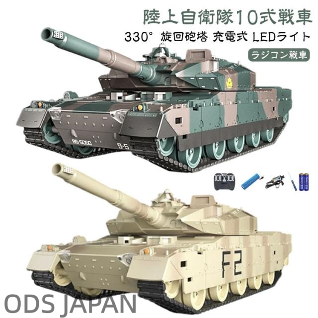 ラジコン 戦車 おもちゃ バトルタンクシリーズ 陸上自衛隊 充電式 LEDライト 10式戦車 RC 室内用 室外用 リモコンタンク クリスマスプレゼント 前照灯 330度旋回砲塔 操縦しやすい おもちゃ 子供 大人 プレゼント