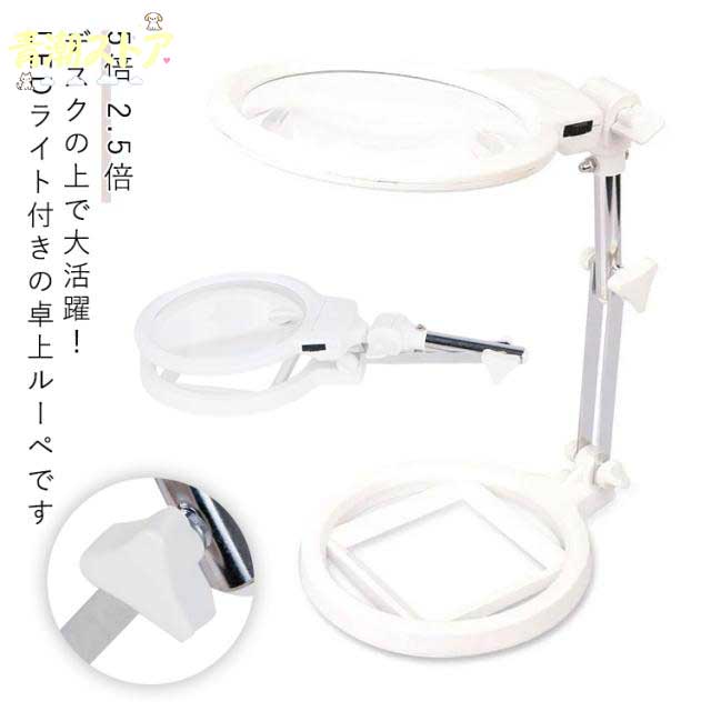 ■スタンドルーペ 多用途 ルーペ LEDライト 拡大鏡 折りたたみ式 スタンド 卓上ルーペ 2.5倍 卓上 拡大鏡 拡大鏡 置き型 卓上ライト 角度調