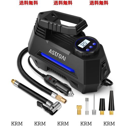 ■AstroAI エアーコンプレッサー エアコンプレッサー 車 空気入れ 自動停止 静音 小型 過熱保護 DC12V ガーソケット接続式 LEDライト 3種類