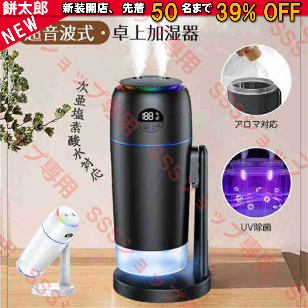 ■加湿器 卓上 超音波 コードレス 小型 大容量 アロマ 次亜塩素酸水対応 静音 USB充電式 ミニ加湿器 小型加湿器 LEDライト 角度調整