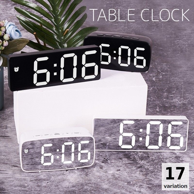 ■置き時計 デジタル LEDライト 温度計 日付 アラーム機能 ミラー 鏡面 ベッドルーム 寝室 リビング 多機能 おしゃれ かっ