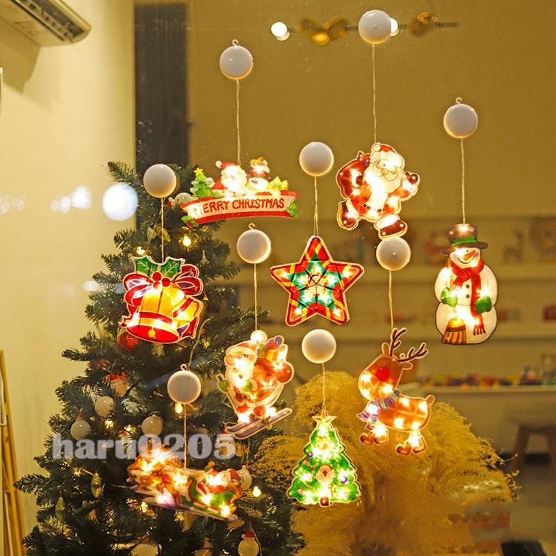 LEDライト クリスマス 飾り付け ショーウインドー ペンダントライト クリスマスツリー 飾り 電池式 サンタ 星 ベル 窓 ガラス Xmas パーティー アクセサリー