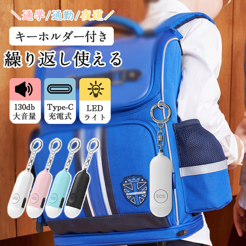 ■防犯ブザー 防犯アラーム Type-C充電式 CE認証 学校 女の子 男の子 防犯グッズ 130db 大音量 LEDライト キーホルダー付き 防犯ベル