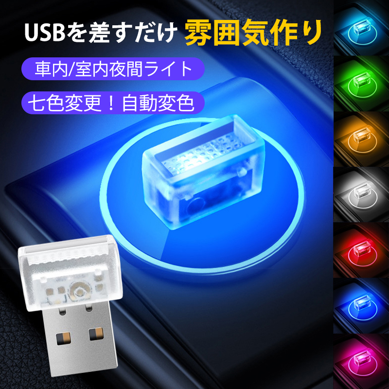 ■車内 USBライト 車内ライト LEDライト 車内灯 車内照明 切替 7色調色 自動変色モード 工事不要 ルームライト 室内灯 小