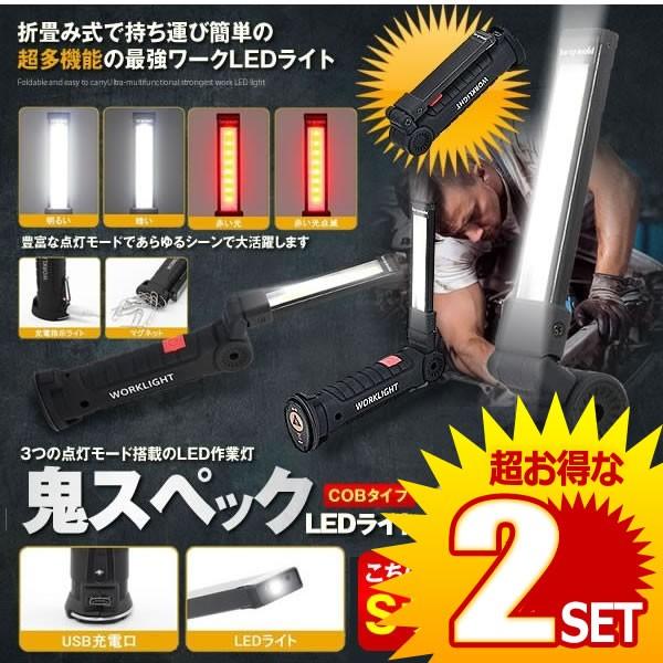 ■2個セット 鬼スペック LEDライト Sサイズ COB LED作業灯 折畳み式 USB充電式 ワークライト 防水 多機能 懐中電灯 360度回転 ONISPL-S