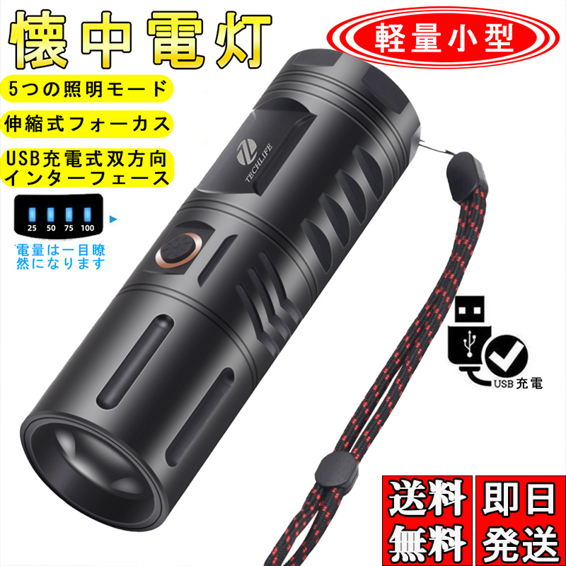 ■即納 懐中電灯 LED 充電式 強力 LEDライト ハンディライト ズーム機能 多モード 小型 軍用 作業灯 充電池付き 停電 防水 防災対策 爆光
