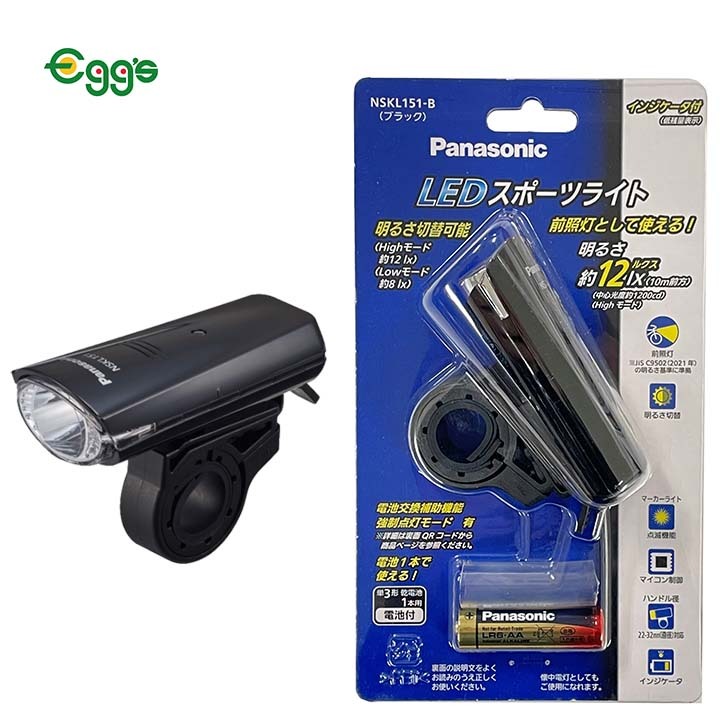 ■自転車 ライト 後付け 電池式 パナソニック Panasonic LEDスポーツライト ブラック LEDライト フロント ハンドル
