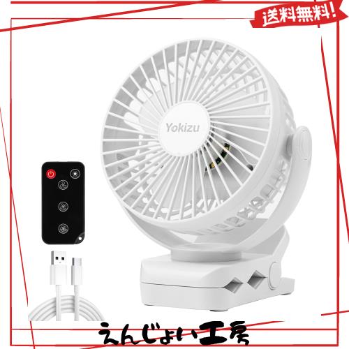 ■Yokizu 卓上扇風機 クリップ 小型 静音 リモコン付き usb充電式 8000mAh大容量 急速充電 60h連続使用 LEDライト モバイルバッテリー 風量