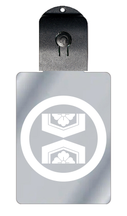 ■光るキーホルダー 家紋シリーズ 丸に向かい割り亀甲に花角 (まるにむかいわりきっこうにはなかく) USB充電 バッグチャーム LEDライト 夜