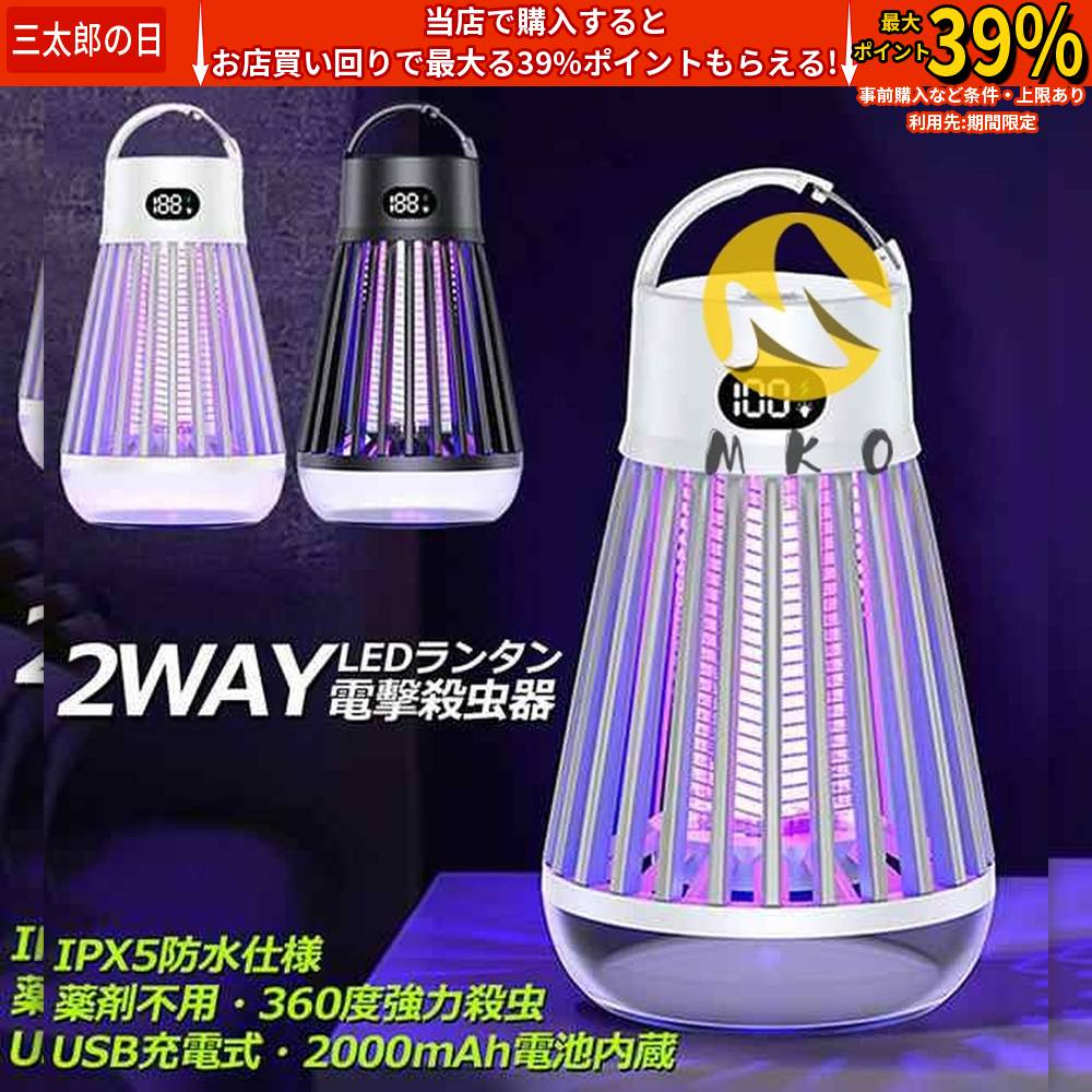 電撃殺虫器 電撃殺虫機 電気蚊取り器 捕虫器 UV光源誘引式 照明 ランタン LEDライト 吊り下げ 据え置き USB充電 防水 殺虫ライト 殺虫灯