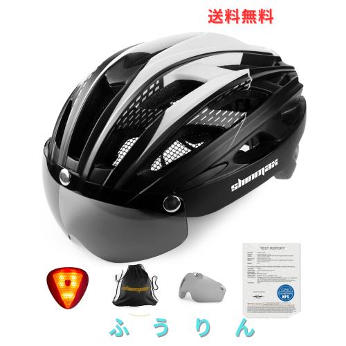 ■Shinmax 自転車 ヘルメット 大人 LEDライト 磁気ゴーグル付 ロードバイク ヘルメット CPSC認定済み 57~62cm 超軽量 通勤 通学 サイクリン
