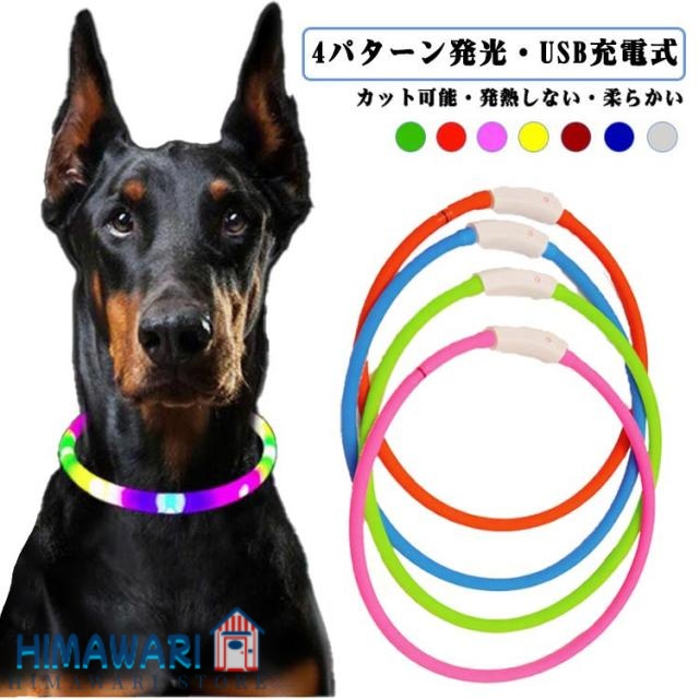 ■犬 光る首輪 USB充電式 カット自由 ライト 中型犬 散歩 首輪 LEDライト 4パターン 夜間 小型犬 安全対策 点灯 レインボー首輪 大型犬 光
